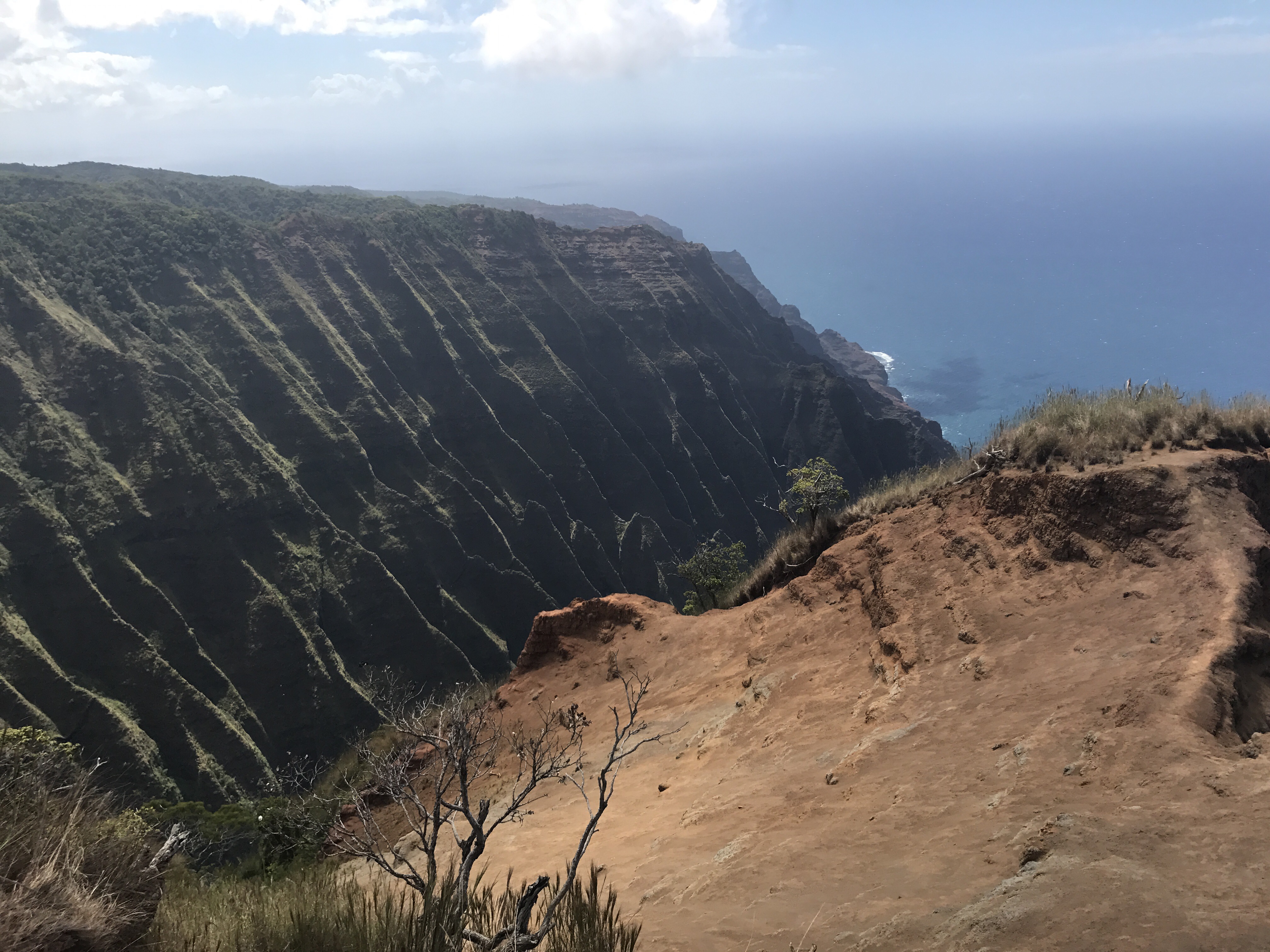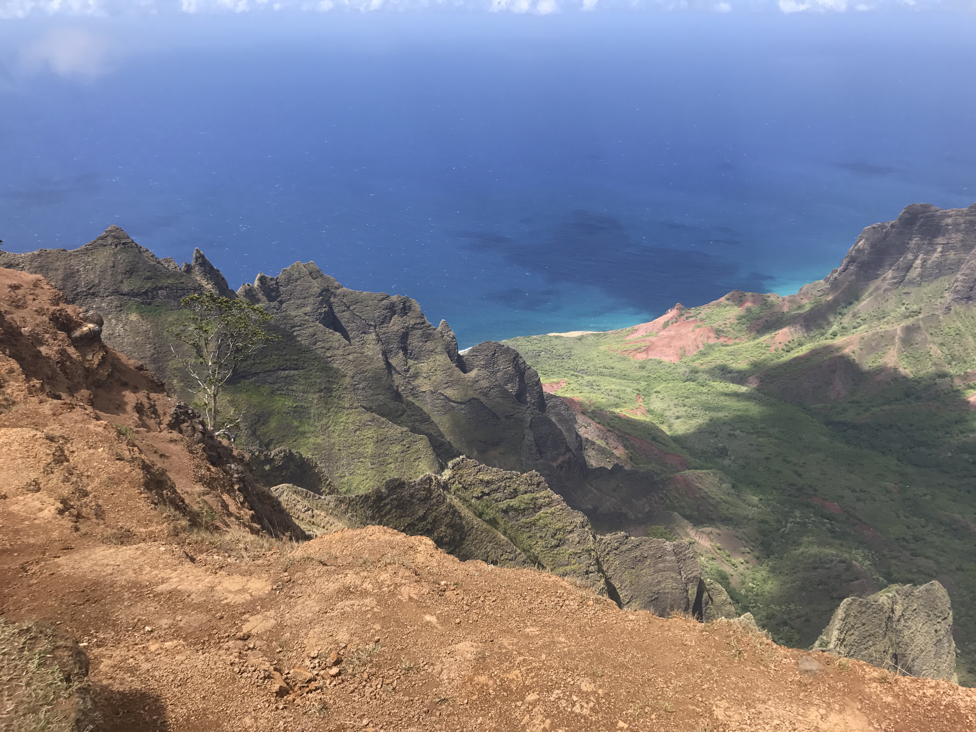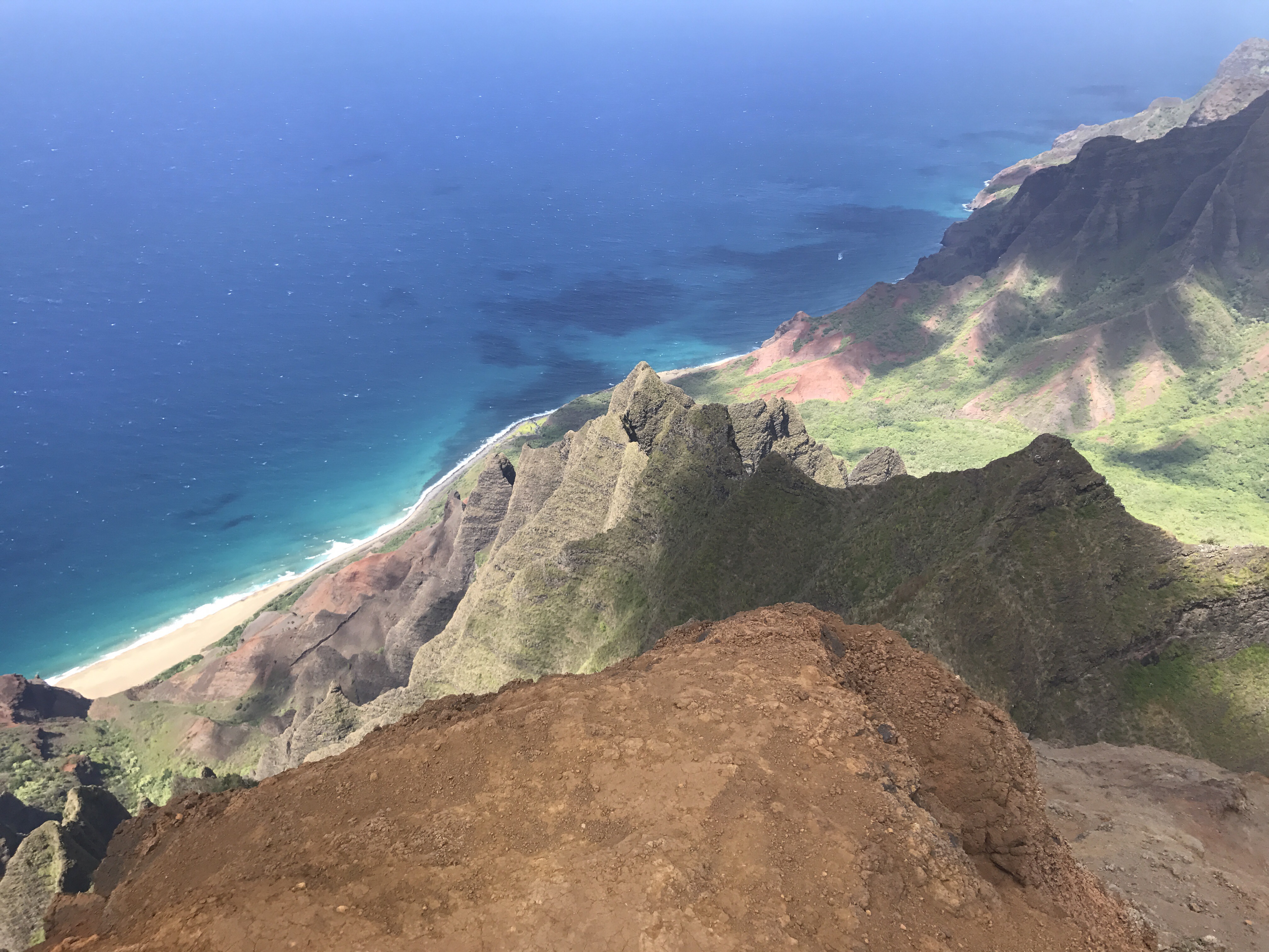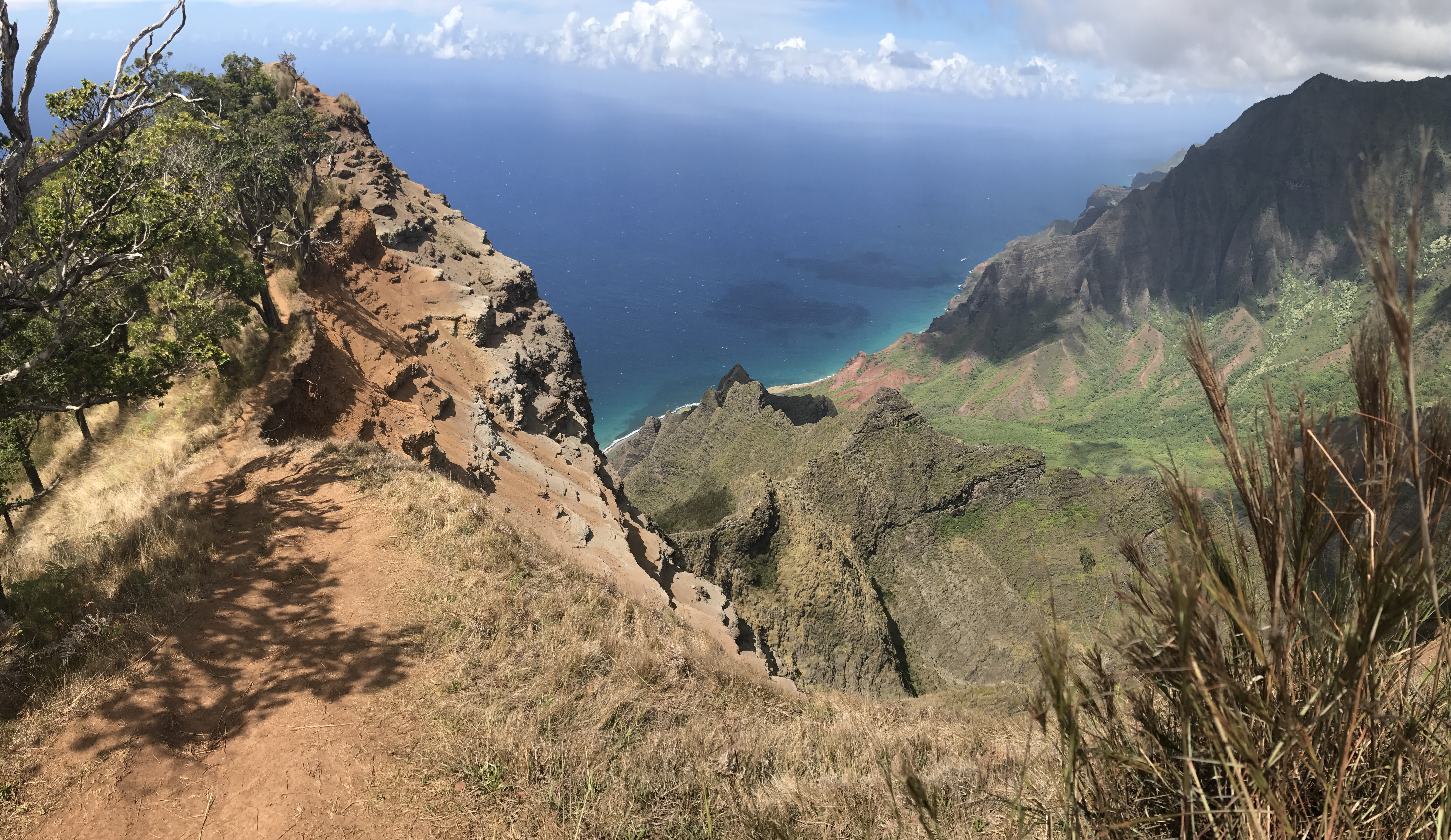 “Dangerous”, “Mortal Danger”, “only with a Guide”, all den Quatsch mussten wir uns anhören als wir für den Trail recherchiert haben. Natürlich gab es auch ein paar steile Stellen, aber wenn es nach der amerikanischen Einschätzung geht, müssten die Hälfte der Alpenwanderwege gesperrt werden — einfach zu gefährlich! Belohnt wurden wir für diesen “waghalsigen und verantwortungslosen” Ausflug mit so ziemlich der besten Aussicht auf die Napaliküste, die man sich vorstellen kann.