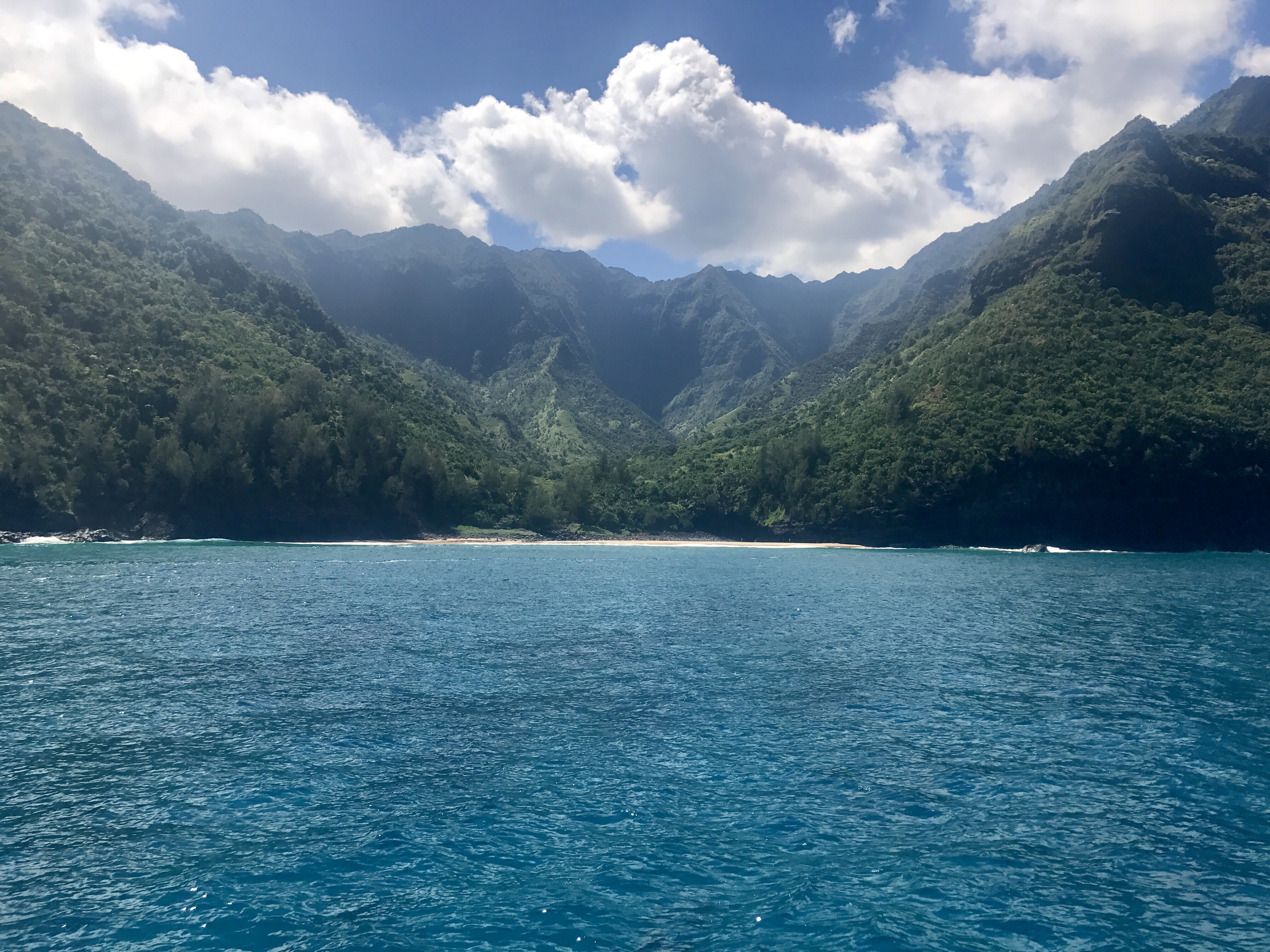 Captain Andy hat gehalten, was er versprochen hatte: wir haben ganze Delphin-Familien mit ihren Babies getroffen, die unser Boot begleitet haben und sogar in die Luft gesprungen sind,  wir haben Wasserschildkröten und eine Robbe gesehen und wir sind am Na’ pali Coast vorbei gefahren und haben die wunderschönen Klippen, einsamen Strände und Wasserfälle bestaunt. Seekrank wurde ich nur, als das Boot zum Schnorcheln angehalten hatte und durch die Wellen in der Bucht hin und her geschaukelt wurde. Ansonsten ist Captain Andy “sehr ordentlich” gefahren. Leider war das Meer an der Stelle, wo wir geschnorchelt haben, nicht besonders aufregend, angeblich konnten wir die eigentlich geplante Stelle wegen zu starker Strömungen heute nicht zum Schnorcheln anfahren…. für mich war es trotzdem aufregend, weil ich zum ersten Mal richtig geschnorchelt bin 😊 Jetzt bin ich gerüstet für das nächste Mal und hoffentlich sehen wir dann ein paar Wasserschildkröten aus nächster Nähe!